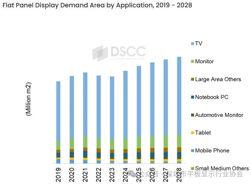 市場研究機(jī)構(gòu)DSCC最新預(yù)測,以面積為基準(zhǔn)的LCD面板市場需求將在5年內(nèi)超過生產(chǎn)供給能力。電視屏幕的增長是最大推動(dòng)力,在顯示面積需求中,電視面板的比重超過70%。