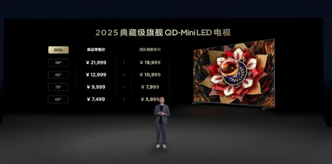 3月10日下午,TCL發布Q10L系列極景QD-Mini LED電視,共有65英寸、75英寸、85英寸、98英寸四款尺寸,標準版上市價7499元起,國補價5999元起,Pro 版上市價8999元起,國補價7199元起。