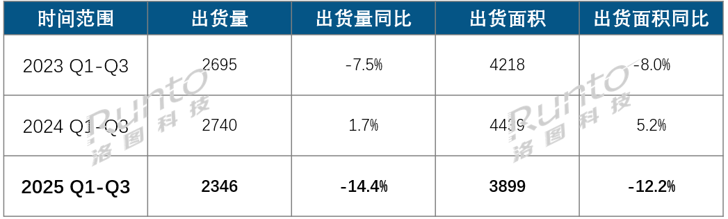 數(shù)據(jù)來源:洛圖科技(RUNTO),單位:千片,千平方米,%