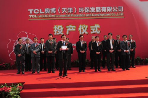 2011年4月13日,“TCL奧博(天津)環(huán)保發(fā)展有限公司正式投產(chǎn)!”隨著TCL集團(tuán)董事長(zhǎng)李東生先生的朗聲宣布,標(biāo)志著國(guó)內(nèi)投資最大技術(shù)最先進(jìn)的家電回收項(xiàng)目開(kāi)始投產(chǎn)運(yùn)營(yíng)。此次投產(chǎn)的TCL奧博一期項(xiàng)目,將達(dá)到10萬(wàn)噸(300萬(wàn)臺(tái))年廢舊家電處理能力,平均再商品化率達(dá)到85-90%以上。二期工程計(jì)劃達(dá)到年處理廢舊家電20-30萬(wàn)噸的規(guī)模。業(yè)內(nèi)人士認(rèn)為,TCL奧博項(xiàng)目的投產(chǎn),使TCL成為國(guó)內(nèi)第一家打造家電循環(huán)經(jīng)濟(jì)產(chǎn)業(yè)鏈的企業(yè), TCL向家電制造業(yè)上下游發(fā)展延伸的全產(chǎn)業(yè)鏈勢(shì)頭已逐漸顯現(xiàn)。