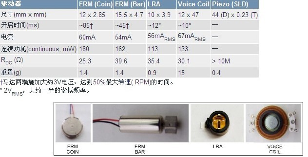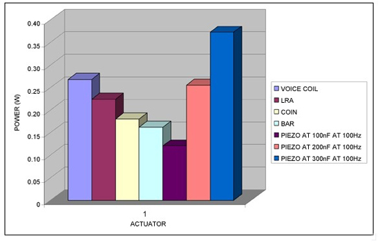 對于音頻應用,效率是最關心的問題,觸覺反饋則與之不同,觸覺反饋的關鍵問題不是效率,而是人的觸感。超過幾百兆赫茲的振動不但不能提供很好的觸覺反饋,反而消耗不必要的功率。周期超過幾毫秒的振動可以產生較強觸感,但也會產生不希望聽到的喀噠聲。