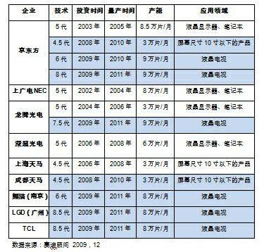 即將過去的2009年可以說是中國LCD面板產業投資的高峰年,據賽迪顧問統計,僅2009年投資(或擬投資)的LCD面板生產線就多達6條,面板生產線的世代覆蓋了6至8.5代,參與投資的企業除了傳統的面板生產廠商如京東方、龍騰光電等,還涉及到一些新進入的企業,如中電熊貓、TCL等,其中也不乏一些外資企業的身影,如LGD在廣州投資的8.5代線。