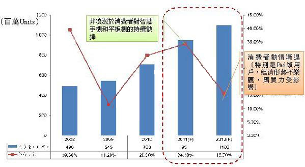 近幾年,ICT產(chǎn)業(yè)發(fā)展最重要的趨勢是智能化,而觸控面板則扮演解決智能化發(fā)展瓶頸的重要角色。在智能手機(jī)和平板電腦的雙重刺激下,2011年成為全球觸控面板產(chǎn)業(yè)需求量井噴的一年,全球觸控面板需求量達(dá)9.5億片,年成長幅度逾三成,其中,包括中國大陸、臺灣、韓國在內(nèi)的主要電容式觸控面板成長幅度都超過50%。