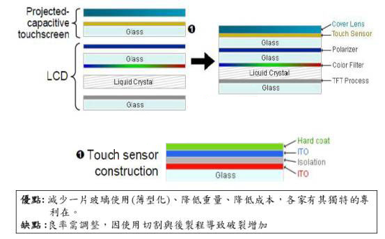 拓墣表示,業(yè)界投射電容式面板的各種技術(shù)比拼已悄然展開,此趨勢在2012年將愈演愈烈,新技術(shù)在終端產(chǎn)品的大幅應(yīng)用下,呼之欲出。不管是Touch On Lens、On-Cell還是In-Cell技術(shù),都順應(yīng)了ICT產(chǎn)業(yè)更輕、更薄、更綠色的潮流,其大面積的應(yīng)用,除了需要技術(shù)的成熟以及成本的下降外,還得搭上諸如iPhone之類有絕對影響力的終端產(chǎn)品的支撐和推廣。