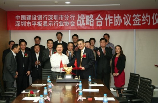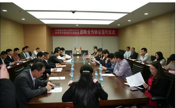 3月30日下午,“建行深圳分行與深圳市平板顯示行業協會戰略合作”簽約儀式在深圳市建行深圳市分行會議室舉行。協議規定,未來三年建行深圳分行向深圳市平板顯示行業協會及各成員單位意向性授予100億元人民幣的授信額度,部分重點用于扶持中小企業發展,包括但不限于流動資金貸款、固定資產貸款、內保外貸、出口買方信貸、互保金貸款、并購貸款、保理、應收款質押、銀行保證、銀行承兌匯票等方面的業務合作,以及加強在進出口業務、貿易融資等方面的合作。