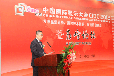 11月17日上午九點,作為第十四屆高交會光電平板顯示展的重要主題活動的第八屆中國國際顯示大會(CIDC2012)在深圳會展中心桂花廳隆重開幕。參加此次大會的有來自國家工業(yè)和信息化部電子信息司丁文武司長,深圳市人民政府盛斌副秘書長,國家工業(yè)和信息化部電子信息司彭紅兵副司長,廣東省經(jīng)濟(jì)和信息化委員會彭平副主任,國家工業(yè)和信息化部電子信息司喬躍山處長,深圳市平板顯示行業(yè)協(xié)會于忠厚會長、董緒旺名譽會長、許生常務(wù)副會長、孫政民秘書長等主管部門和協(xié)會領(lǐng)導(dǎo);以及來自企業(yè)界的京東方張宇高級副總裁、劉鋒副總裁,康佳集團(tuán)劉鳳垚副總裁,華星光電王國和高級副總裁,天馬集團(tuán)孫永茂副總裁,長城計算機周庚申總裁,深紡集團(tuán)王濱董事長,TCL副總裁、研究院院長閆曉林,DisplaySearch謝勤益副總裁等。